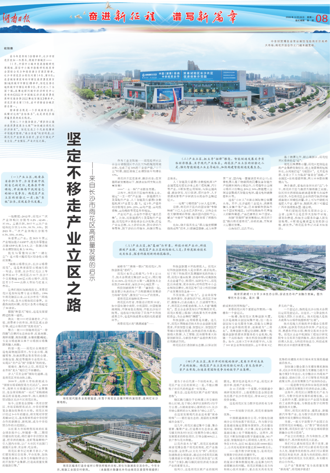 (四)产业立区,离不开对环境的保护,更离不开对未来产业的把脉。雨花区产业立区的经验之四是:重生态保护、重产业布局,打造具有国际竞争力的数字产业集群。