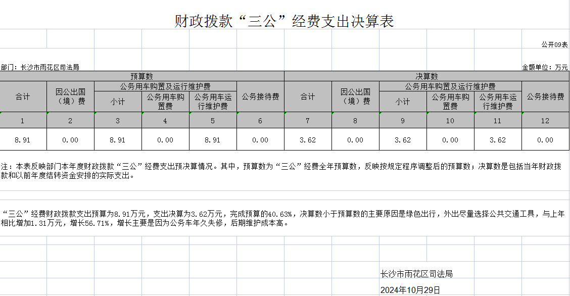 长沙市雨花区司法局2023年度一般公共预算财政拨款“三公”经费决算公开