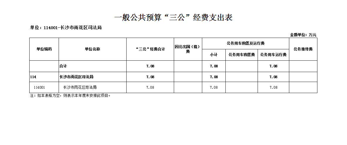 长沙市雨花区司法局2025年度一般公共预算财政拨款“三公”经费支出公开表