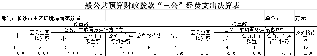 长沙市生态环境局雨花分局2023年“三公”经费支出决算表