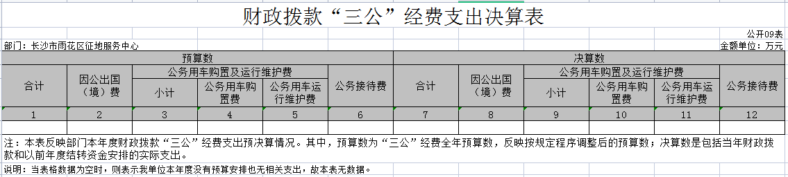 2023年度长沙市雨花区征地服务中心“三公”经费支出决算表