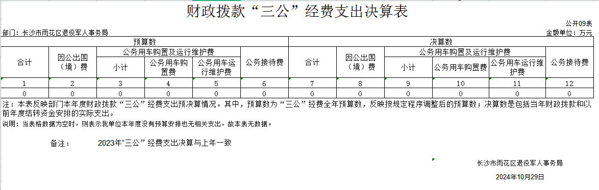 雨花区退役军人事务局2023年“三公”经费决算表