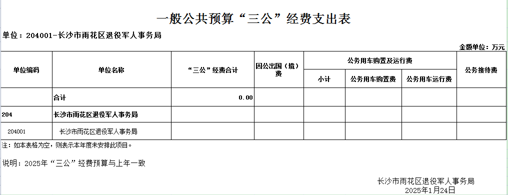 长沙市雨花区退役军人事务局2025年”三公“经费预算表.xls