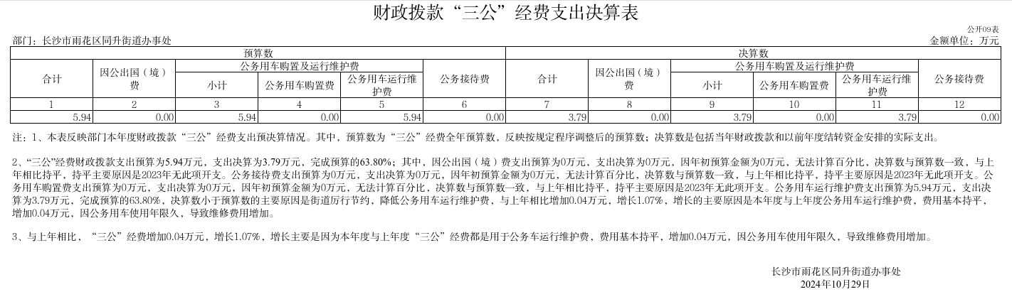 雨花区同升街道2023年一般公共预算财政拨款“三公”经费支出决算表