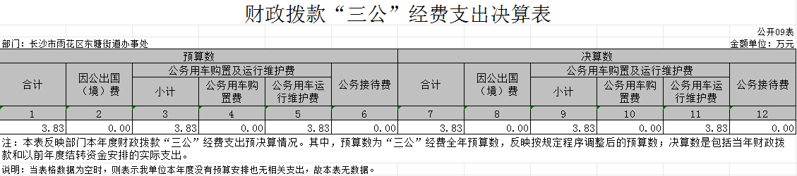 长沙市雨花区东塘街道办事处2023年度财政拨款“三公” 经费支出决算表