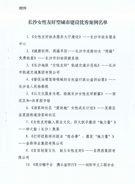 关于2024年长沙女性友好型城市建设优秀案例通报
